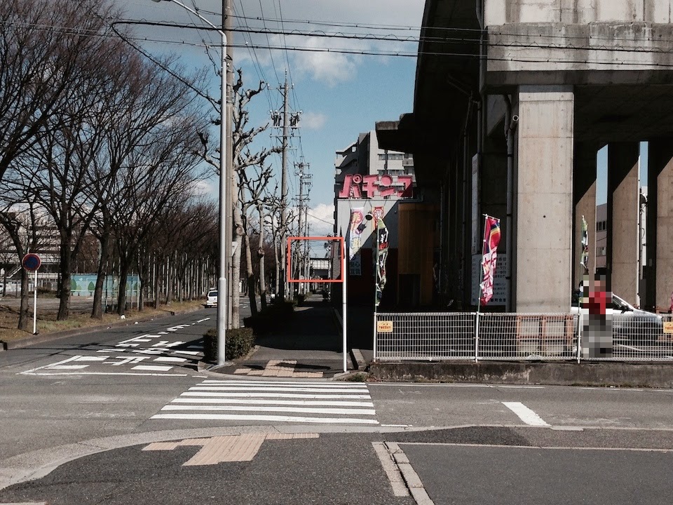 江川線を超え、南郊公園沿いに歩くと南方貨物線が見えてきました。高架橋跡にパチンコ店が入っている所です。