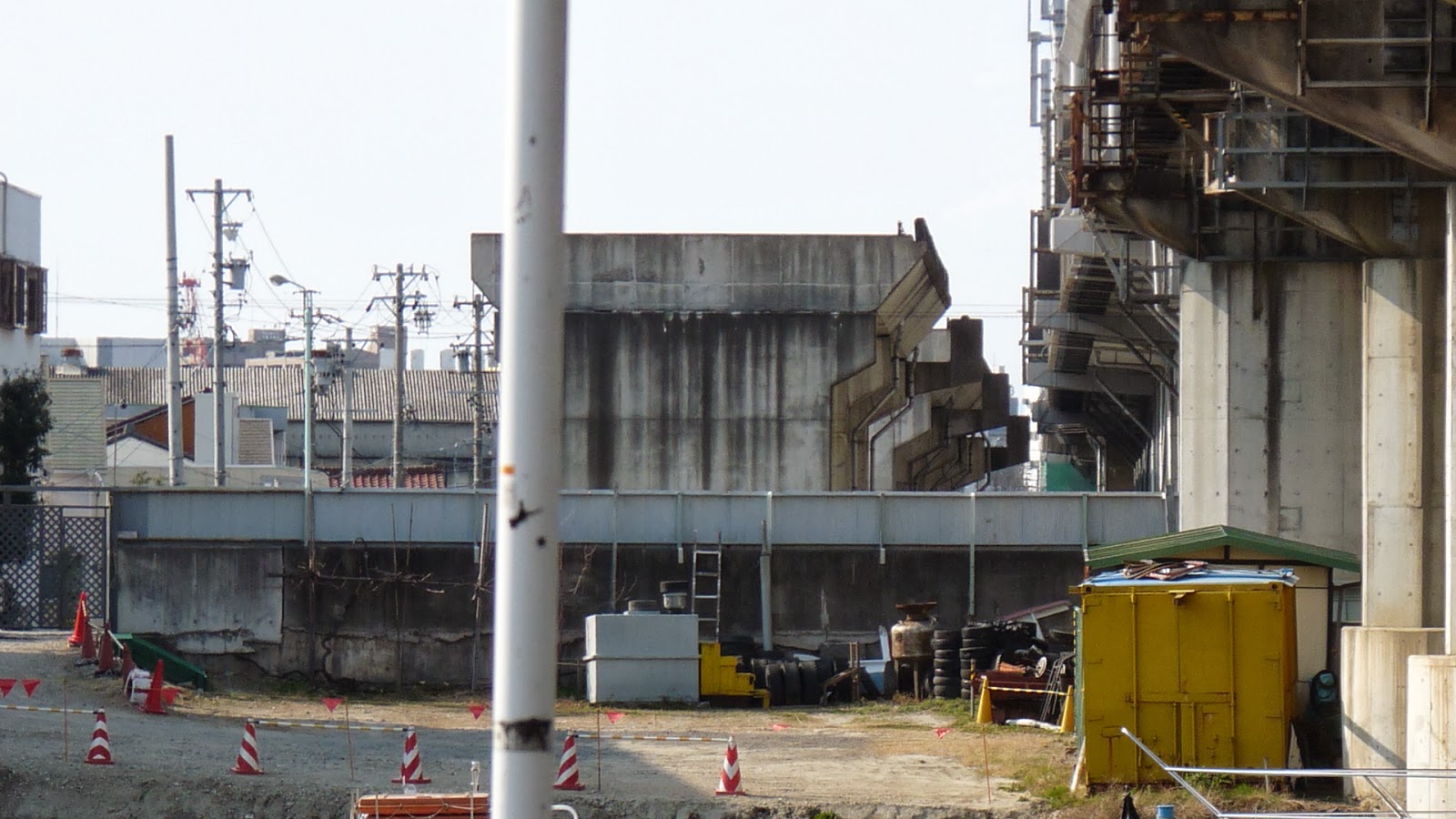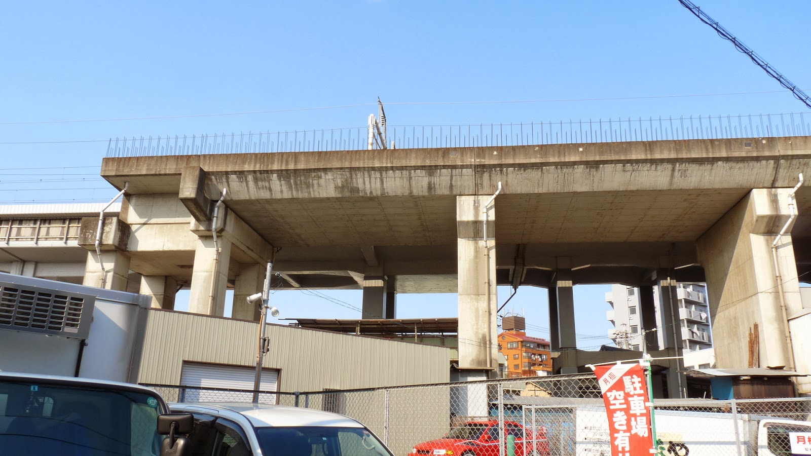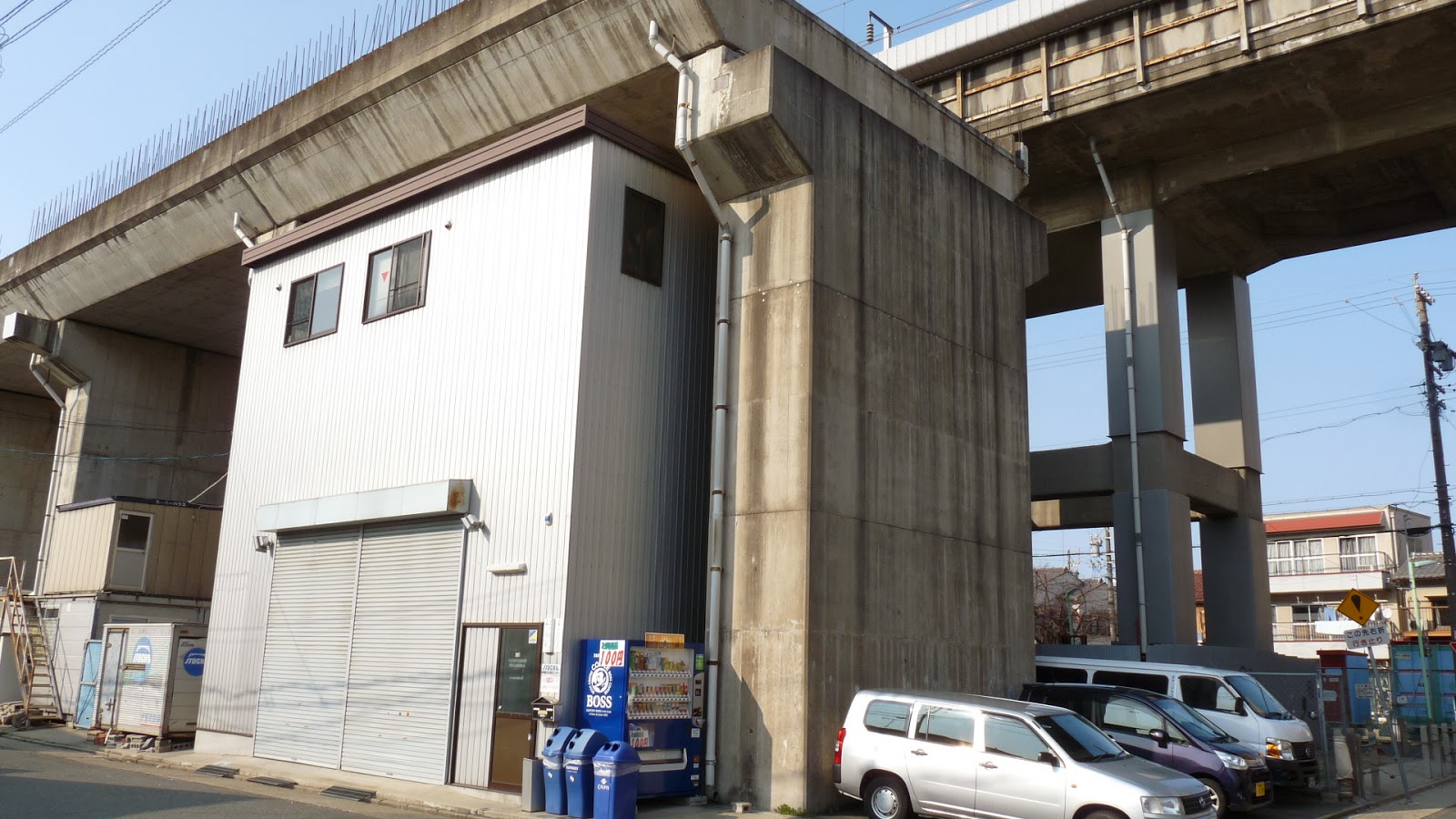 高架の中に建物がスポット入っています。先ほどの運送会社の事務所でしょうか?