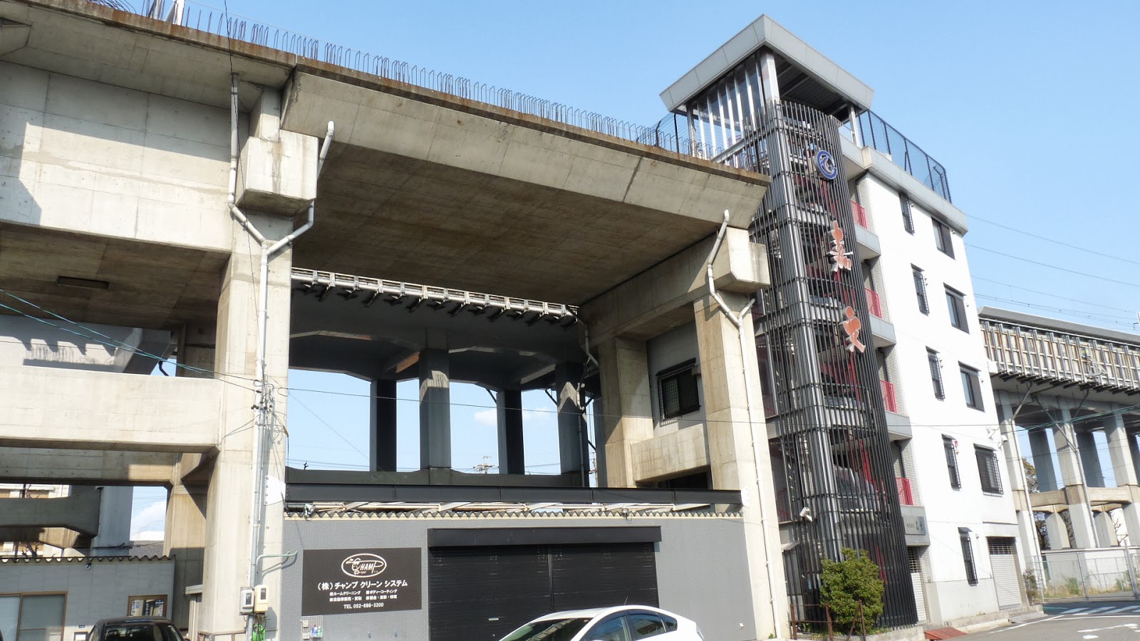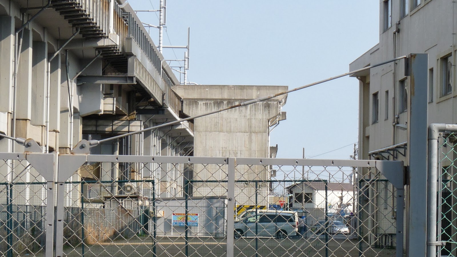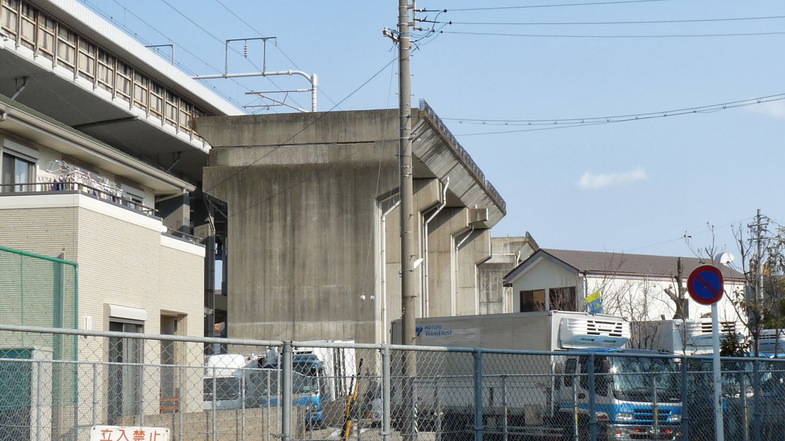 高架の中に建物がスポット入っています。先ほどの運送会社の事務所でしょうか?