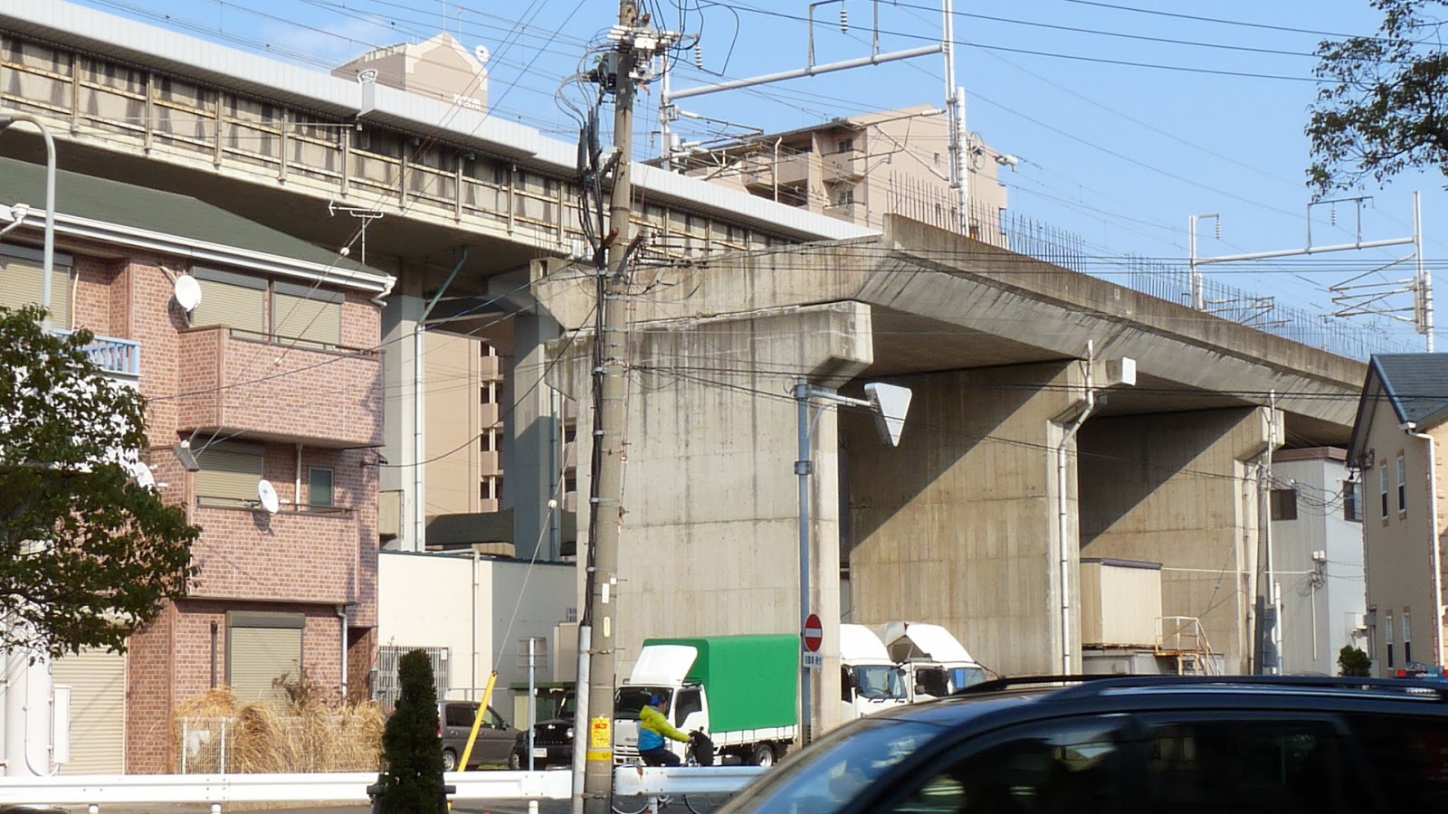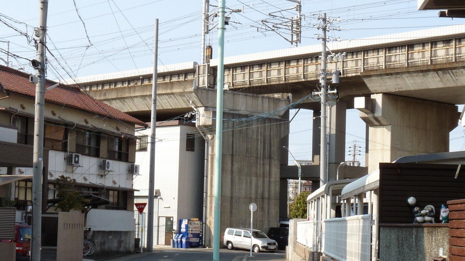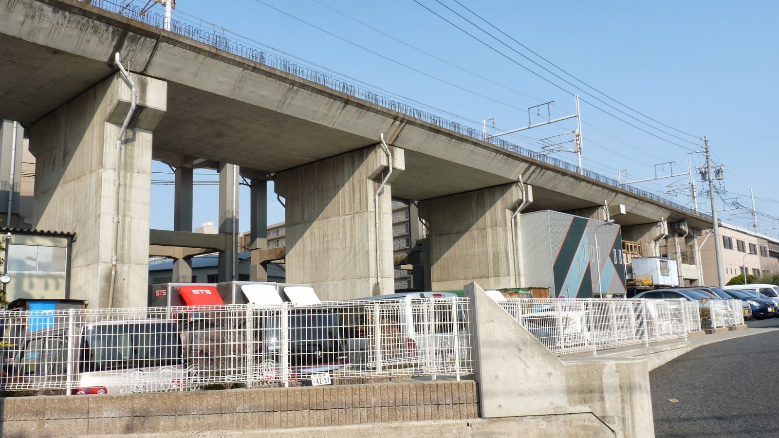 名鉄常滑線と南方貨物線、東海道新幹線が交差する場所です。